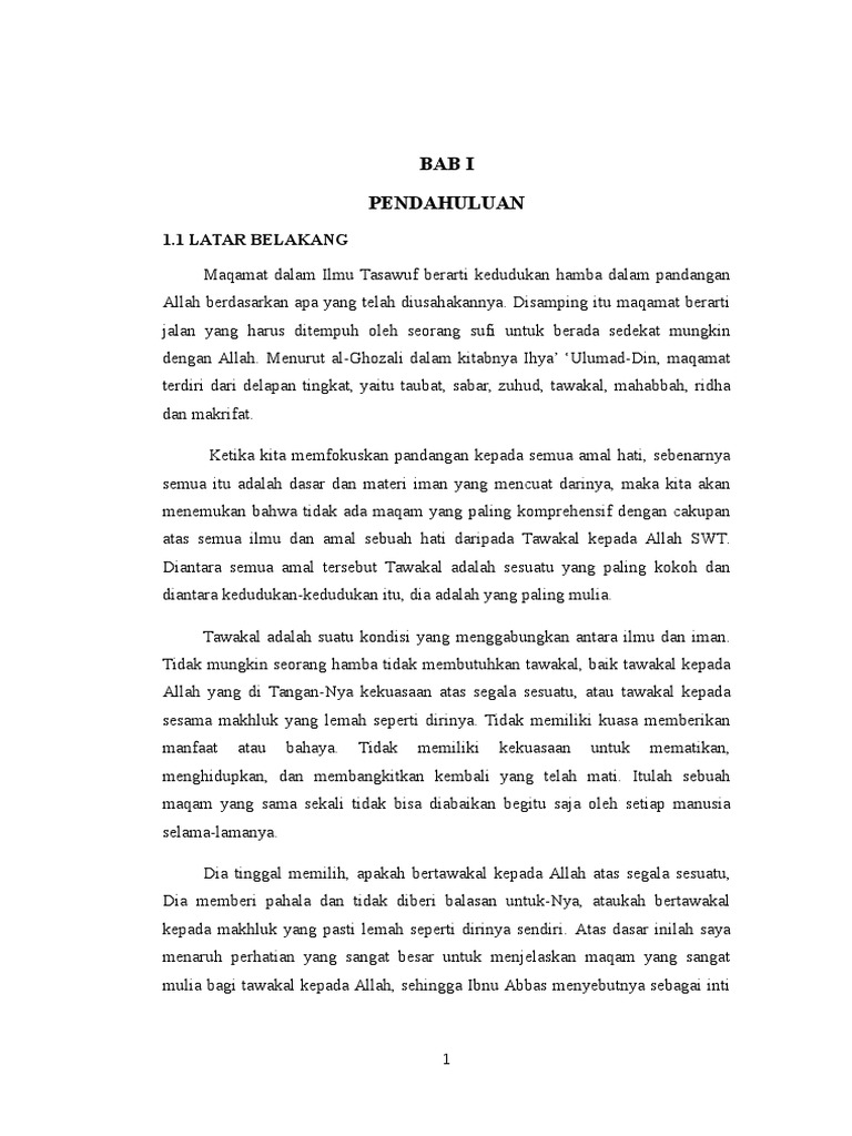 Siapasih yang tidak ingin mendapatkan hal itu, kebahagian itu. Tawakal adalah penyerahan diri dan segala keputusan sepenuhnya kepada allah swt. Ini diartikan sebagai berserah diri kepada allah. Tawakal adalah tahapan ketika seorang hamba telah melalui fase ikhtiar. Pilihan yang tepat untuk menuju kesuksesan adalah tawakal kepada sang kholiq dan berusaha sekuat tenaga selagi kita masih bisa.